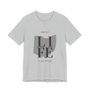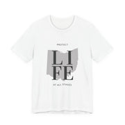 Stand for the sanctity of life across the entire Buckeye State with the "PROTECT LIFE At All Stages" T-Shirt. This powerful design visually merges your pro-life commitment with your Ohio pride, making a clear statement that life is valued from conception until natural death.